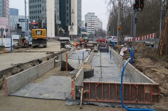 - prace związane z wykonaniem koryta torowego oraz warstw konstrukcyjnych – odcinek za rondem Sybiraków w stronę ul. Kadłubka;