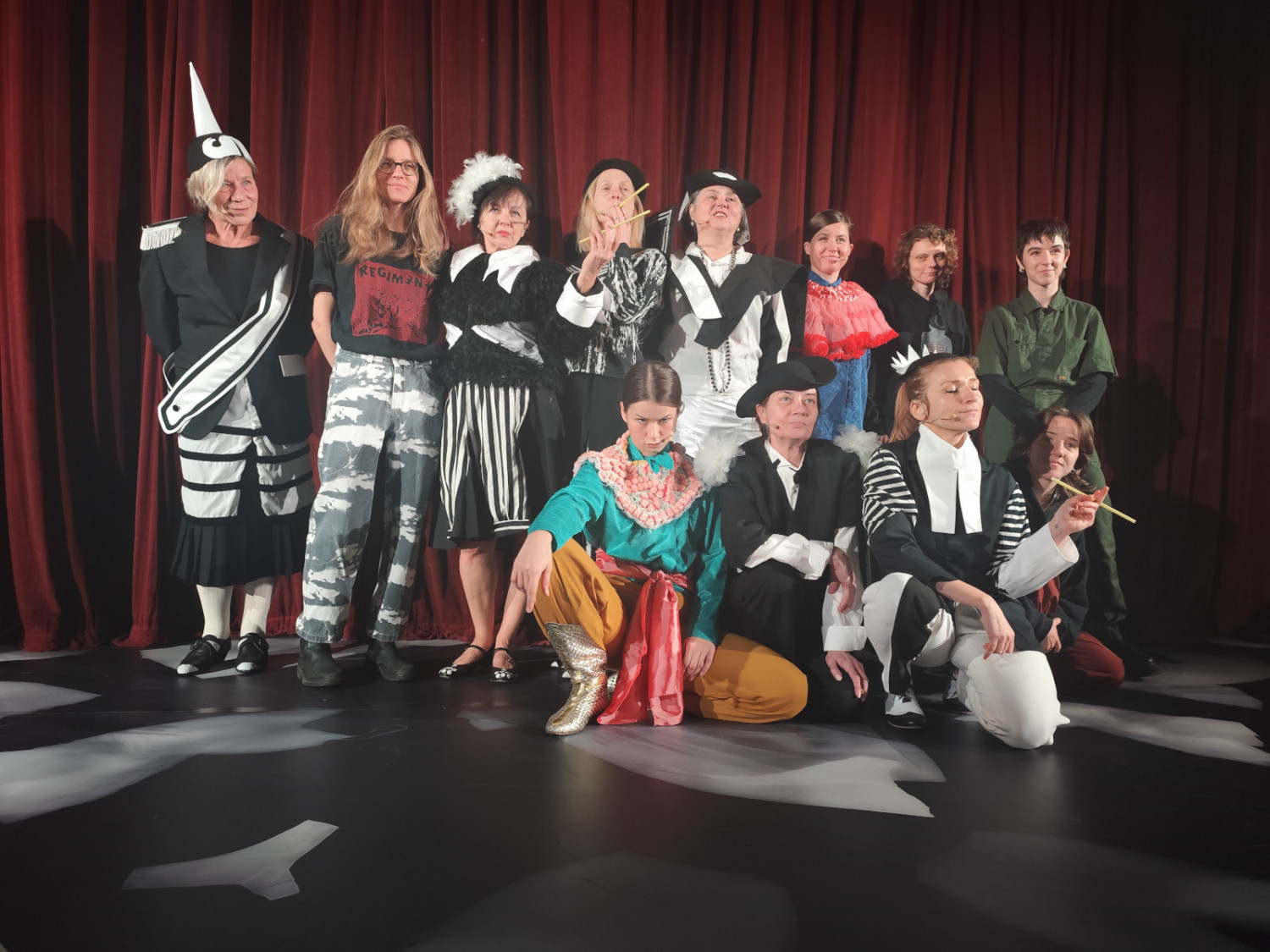 – Myślę, że warto zaznaczyć tutaj, że nie jest to spektakl stricte dokumentalny, jest on raczej naszą fantazją na kanwie tej historii – mówi Nowak. – Staramy się uchwycić też pewnego rodzaju żart i taką ostrość, która zawierała się w tej kontrpropagandzie i w ogóle w sztuce tych dwóch artystek, która jednak była bardzo kampowa, często karykaturalna, oparta na satyrze, parodii. Mamy tutaj takie zakusy na to, żeby trochę powielić, w bardzo luźniej teatralnej formie, ten gest – zdradza.