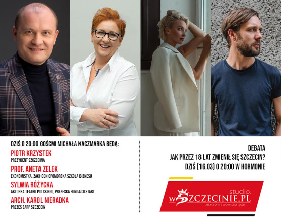 – Zależy nam, by debata była skrzyżowaniem poglądów ludzi, którzy nie boją się mówić otwarcie, co myślą. To będzie debata „bez krawata”, ale jednocześnie spodziewamy się odważnych opinii i śmiałych tez o tym, które szanse miasto wykorzystało, a które nie do końca – mówią organizatorzy. – Bardzo liczymy na obecność mieszkańców Szczecina. Zresztą podczas debaty zaprezentujemy sondę przeprowadzoną wśród szczecinian, ale nie tylko. To już jednak niespodzianki, które pokażemy po 20:00.
