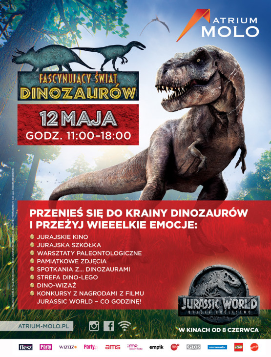 W czerwcu na ekrany kin wejdzie pełen akcji i efektów specjalnych film „Jurassic World: Upadłe królestwo”. Z tej okazji już miesiąc przed premierą, w najbliższą sobotę 12 maja, Atrium Molo zaprasza na wyprawę do niezwykłego świata dinozaurów. Tego dnia w godzinach 11:00-18:00 centrum przy ul. Mieszka I 73 przemieni się w świat zamieszkały przez prehistoryczne gady, a klienci poczują się jak bohaterowie nowego filmu z kultowej serii.
