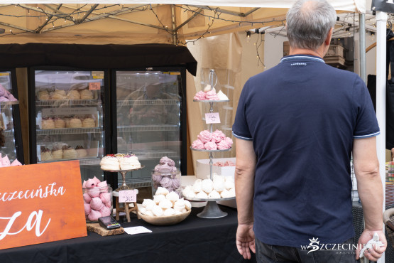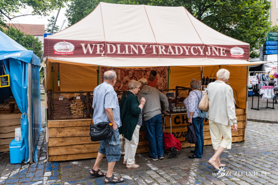 Na stoiskach ze smakołykami znaleźć można sery, chleby, tradycyjne wędliny, zioła, suszone warzywa, ale także świeże jak czosnek, domowe przetwory, oscypki. Wśród słodkości są baklawy greckie, chałwy tureckie, szczecińskie bezy i miody – zarówno te tradycyjne, jak i pitne.