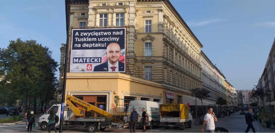 Dariusz Matecki również aktywnie promował swoją kandydaturę. Przy deptaku Bogusława pojawił się wielki baner, na którym polityk Suwerennej Polski zapowiada organizację imprezy na deptaku, kiedy Zjednoczona Prawica „wygra z Tuskiem”.