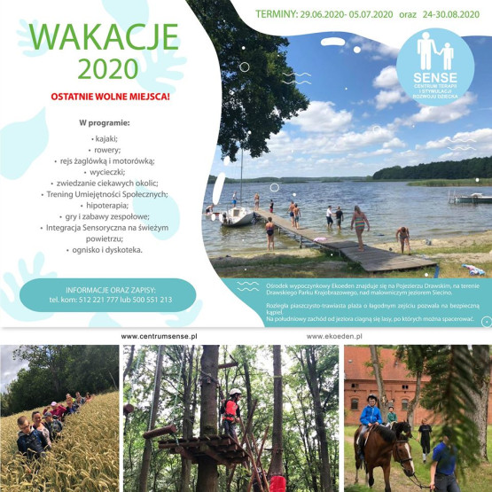 — Co roku organizujemy wakacje z SENSE dla dzieci z autyzmem oraz zespołem Aspergera — mówi Mirosława Bloch. — W tym sezonie odbędą się one na Pojezierzu Drawskim, w pięknych okolicznościach przyrody, gdzie czeka ogrom atrakcji i ciekawych chwil. Jak zawsze odbywać się będą piesze wycieczki, będziemy pływać, żaglować, odwiedzimy stadninę koni, zorganizujemy zabawy grupowe i przeprowadzimy integrację sensoryczną na świeżym powietrzu. Pozostało kilka wolnych miejsc na termin sierpniowy, zachęcamy zatem do kontaktu telefonicznego — zachęca.