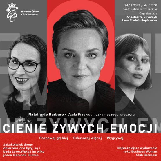 Już 24 listopada Natalia de Barbaro poprowadzi specjalne warsztaty w Teatrze Polskim w Szczecinie. Wydarzenie odbywa się z inicjatywy kobiet zgromadzonych wokół Business Club Szczecin.