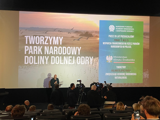 Cały pomysł na krótki spot, który od piątku 8 listopada jest wyświetlany w kinach w całej w Polsce, opiera się na tym, aby przebodźcowanego obrazami odbiorcę zaskoczyć. Zresztą dźwięki wykorzystane w spocie to prawdziwe odgłosy Międzyodrza nagrane przez muzyka Michała Zygmunta. Jest też drugi spot, już pokazujący zdjęcia przyrody Doliny Dolnej Odry, który jest przeznaczony do puszczania w telewizji. – Jestem dumny, że cała Polska może zobaczyć ten cud – mówił w Warszawie wojewoda zachodniopomorski Adam Rudawski. Podczas premiery padły też konkrety dotyczące stanu prac nad powołaniem parku.
