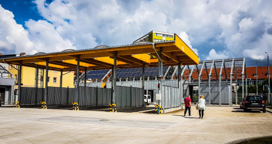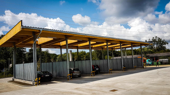 Deszczówka zbierana będzie do podziemnych pojemników, a następnie zostanie wykorzystana do bieżącej obsługi obiektu. Zamontowane na dachu jednego z budynków baterie słoneczne pozwolą na zasilenie w energię elektryczną całego Punktu Selektywnej Zbiórki Odpadów. Konstrukcje zostały przygotowane w taki sposób, aby docelowo przyozdobiły je pnące rośliny.