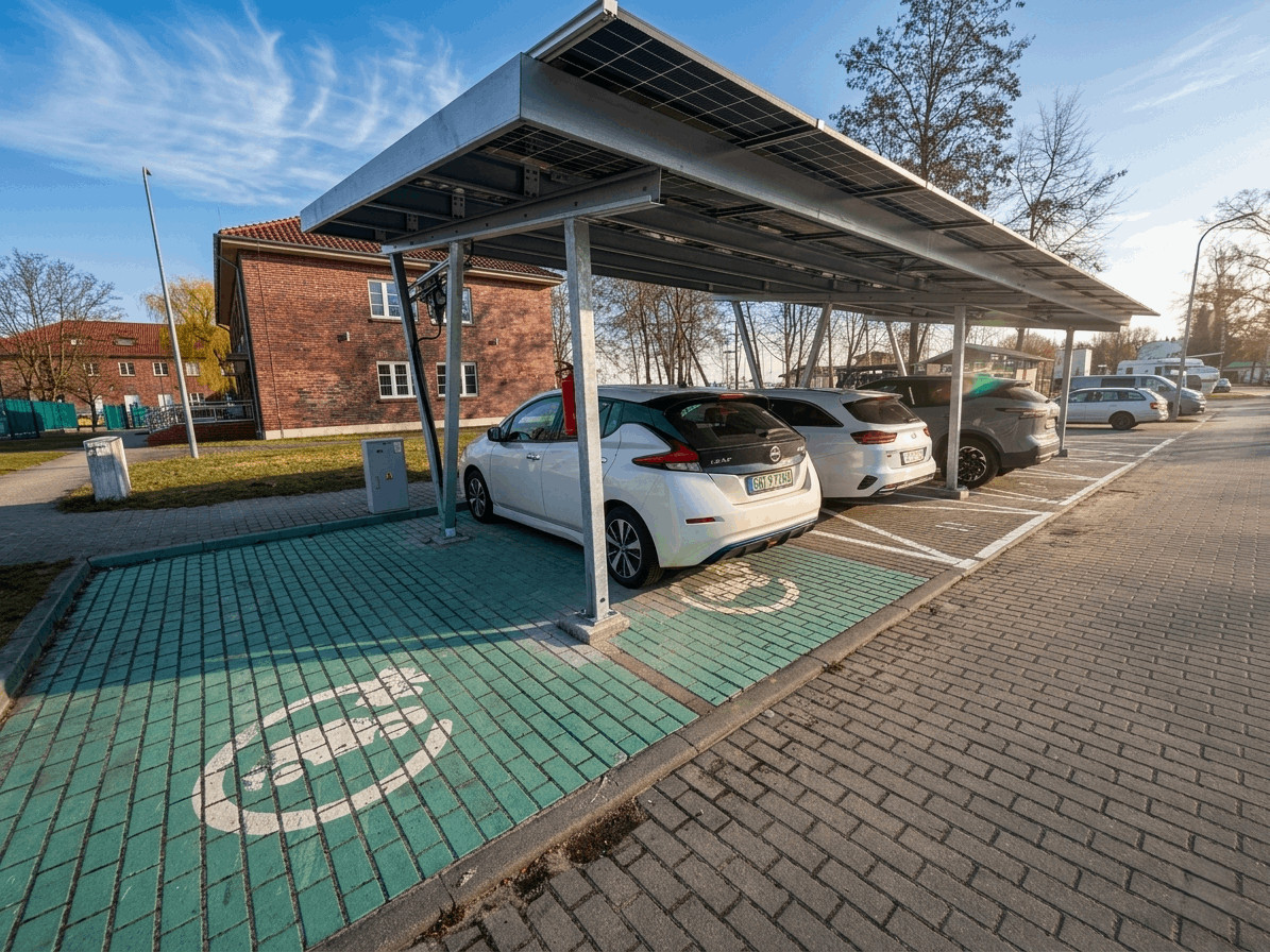 W ramach inwestycji powstały trzy stacje ładowania pojazdów elektrycznych, oferujące łącznie sześć miejsc do ładowania samochodów. Dodatkowo zamykana wiata dla rowerów wyposażona jest w 4 ładowarki rowerów elektrycznych.