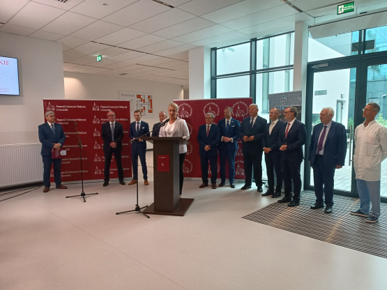 Minister Sójka podpisała w poniedziałek również drugą umowę z PUM, związaną z realizowanym przez uczelnię inwestycyjnym programem wieloletnim. Dodatkowe 210 mln zł pozwoli zawrzeć umowę z wykonawcą wyłonionym w przetargu – konsorcjum spółek Doraco i Porr – który w wykopie przy ul. Unii Lubelskiej wybuduje ośrodek kliniczno-dydaktyczno-badawczy.