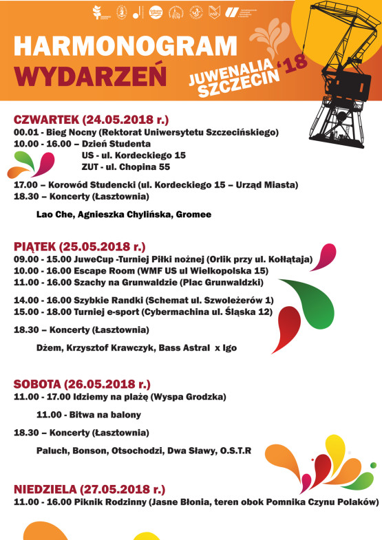 Świętowanie rozpocznie się od tradycyjnego Biegu Nocnego, który wystartuje w nocy ze środy na czwartek (23/34 maja). Tuż po północy studenci wyruszą spod Rektoratu US przy al. Jana Pawła II i pobiegną ulicami miasta do fontanny koło Wydziału Chemii ZUT. Nagrody otrzymają ci, którzy najszybciej pojawią się na mecie oraz ci najciekawiej przebrani.