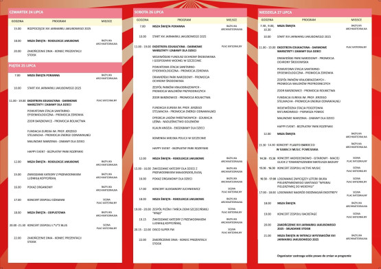 Więcej informacji, w tym dokładny program jarmarku, dostępnych jest na stronie: https://www.jarmarkjakubowy.pl/.