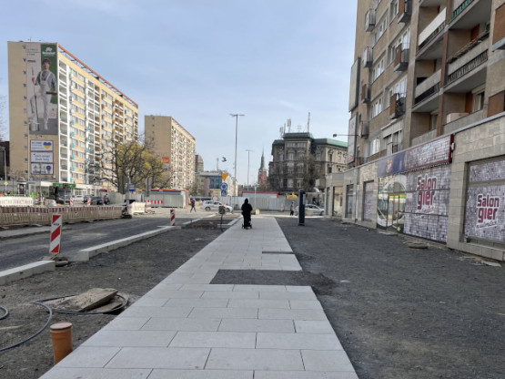 Na odcinku między pl. Zgody i ul. Jagiellońską można już zobaczyć jak docelowo będą wyglądać nowe chodniki na przebudowywanym frag...