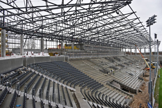 Najwięcej dzieje się na trybunie północnej, ostatnie prace konstrukcyjne trwają też na trybunie wschodniej. Równolegle prowadzone...