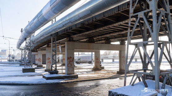 Tak jedna z największych szczecińskich inwestycji wygląda zimą. Właśnie powstaje nowy wiadukt [foto]