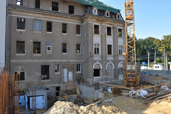 Powstaje łącznik między halą zajezdni a przedwojenną kamienicą [foto]