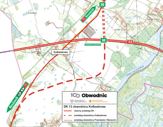 DK 13 w kierunku granicy ma zostać wyprowadzona z obszarów zabudowanych, przez które obecnie prowadzi. Sama obwodnica Kołbaskowa m...