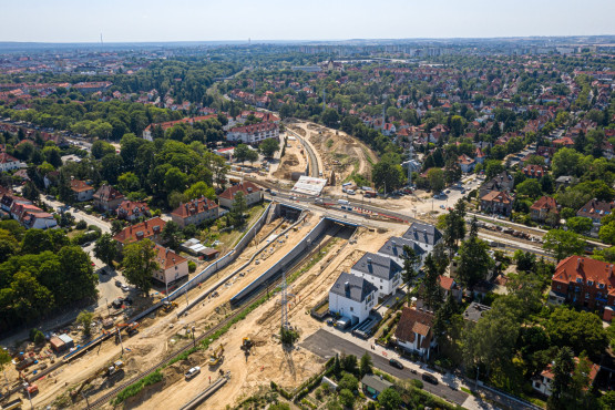 Docelowy układ drogowo-kolejowy węzła Łękno jest coraz lepiej widoczny. Tory kolejowe będą przeniesione bardziej w lewo (patrząc o...