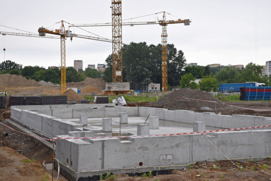 Prace budowlane trwają nie tylko w części aquaparkowej, ale również przy budowie edukatorium, budynku zaplecza sanitarno-szatniowe...