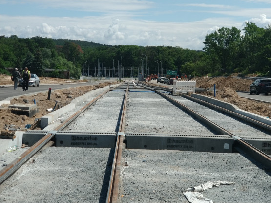 Trwają prace przy budowie Węzła Głębokie. Na przebudowywanej pętli pojawiają się nowe elementy torowiska. Postęp robót widać na zd...