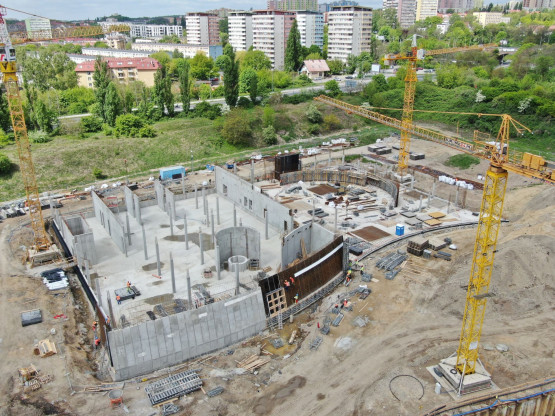 Widać to zwłaszcza po budynku Edukatorium, w którym wykonywane są ściany parteru. Postęp prac doskonale pokazują zdjęcia z powietr...