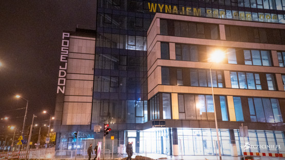 Pionowy, podświetlany napis „Posejdon” pojawił się na elewacji budynku przy Bramie Portowej.