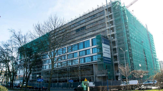 Od strony Bramy Portowej odsłonięto fragment elewacji nowej części kompleksu biurowo-konferencyjno-hotelowego Posejdon. Budynek ma...
