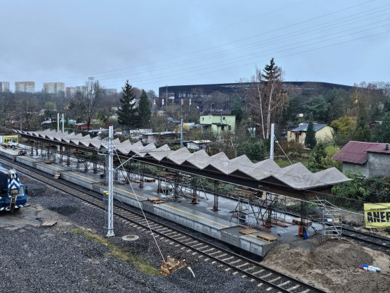 Betonowe kielichy stanęły już na nowym peronie wyspowym, który zaprojektowano w ramach Szczecińskiej Kolei Metropolitalnej.