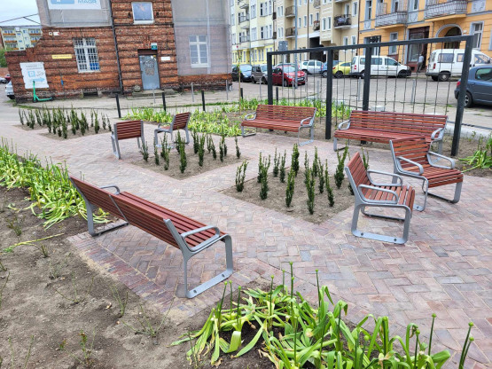 Zaniedbany trawnik zamienił się w park kieszonkowy. Na pełen efekt trzeba poczekać aż wszystko rozkwitnie