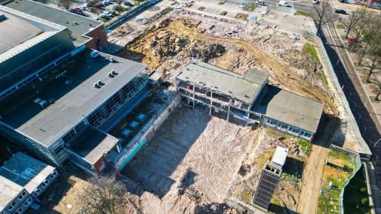 Ze starego SDS został tylko hol wejściowy. Obok wyrosną nowy basen i hala sportowa [foto]