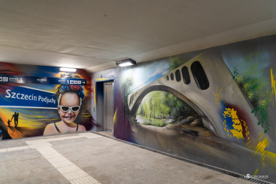 Ściany tunelu łączącego perony na przebudowanej niedawno stacji Szczecin Podjuchy ozdobiły murale. Można na nich zobaczyć świetnie...
