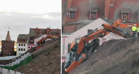 Koparka zjechała z zamkowej skarpy