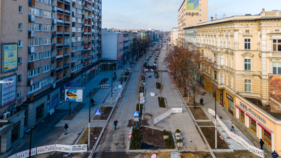 Prace na al. Wojska Polskiego postępują. „Z dnia na dzień uwidacznia się nowy, śródmiejski charakter ulicy”
