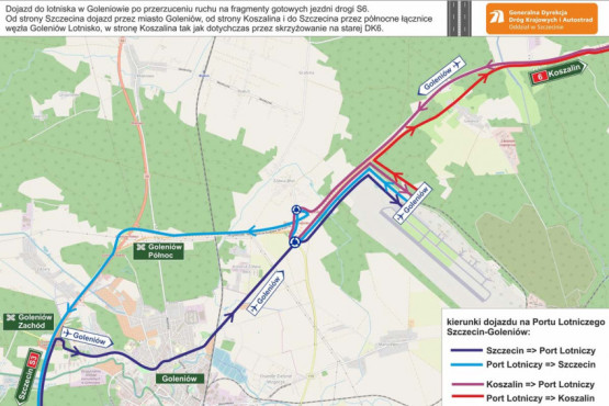 Uwaga! Zmieniła się trasa dojazdu do lotniska w Goleniowie
