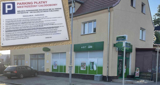 Miejsca parkingowe znajdują się na terenie prywatnym. Nie należą do drogi publicznej – taka informacja wita wszystkich parkujących...