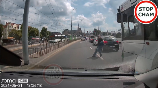 Mężczyzna przebiegał przez trzypasmową jezdnię w niedozwolonym miejscu i prawie wpadł pod koła nadjeżdżającego auta. Krok od trage...