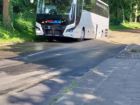 Do zdarzenia doszło dzisiaj nad ranem przy ul. Pszennej w Szczecinie. Autobus turystyczny dosłownie zapadł się w jezdni, najprawdo...