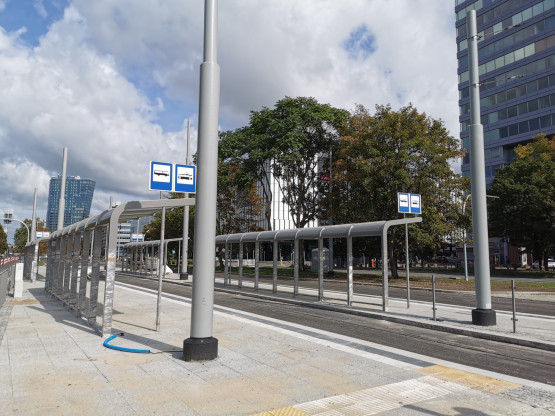 W al. Wyzwolenia trwa przebudowa infrastruktury tramwajowej. Zmiany w obrębie pl. Rodła obejmują m.in. budowę dwóch peronów dla po...