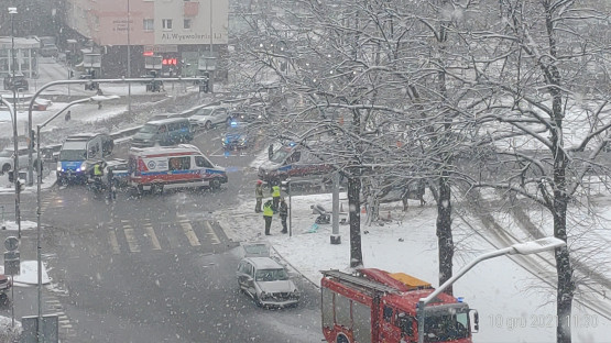 Kierująca mercedesem, jadąca od strony pl. Rodła, wjechała na skrzyżowanie na pl. Żołnierza Polskiego na czerwonym świetle. Na sku...