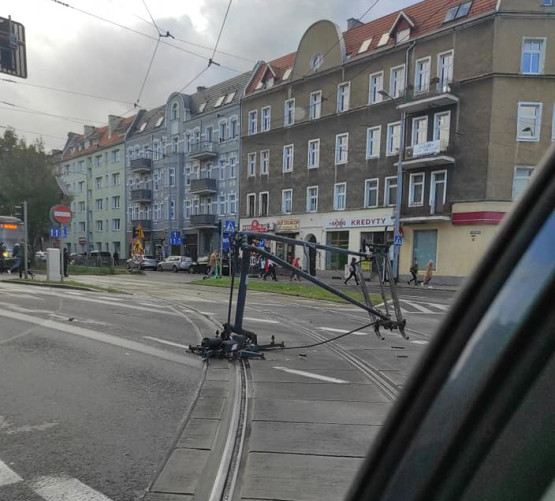 Sytuacja wyglądała niebezpiecznie i całe szczęście, że nikt nie znajdował się w miejscu, gdzie runęło urządzenie. Pantograf spadł...