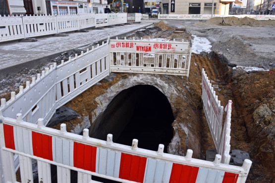 Podczas prac w rejonie pl. Zgody odkopano zbiornik przeciwpożarowy z czasów II wojny światowej. Betonowa konstrukcja zostanie roze...