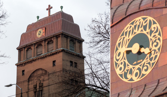Trwa renowacja wieży sanktuarium Najświętszego Serca Pana Jezusa przy pl. Zwycięstwa. Pojawił się na niej zegar, który zaprojektow...