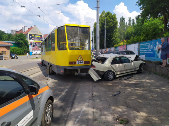 Tramwaj wykoleił się przy stoczni. Dwa zniszczone samochody [foto]