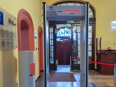 Specjalną bramkę do mierzenia temperatury zamontowano na wejściu do Urzędu Wojewódzkiego