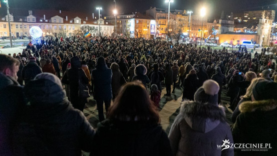 Setki szczecinian przybyły w poniedziałkowy wieczór na pl. Solidarności, na którym zorganizowano manifestację „Szczecin przeciwko...