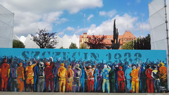 Mural upamiętnia szczecińskie strajki sprzed 30 lat. Będzie można go oglądać przez najbliższe dwa miesiące.
