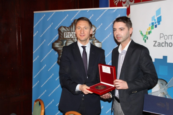 Marszałek Województwa Zachodniopomorskiego Olgierd Geblewicz i Komendant Wojewódzki Policji insp. Jarosław Sawicki nagrodzili mie...