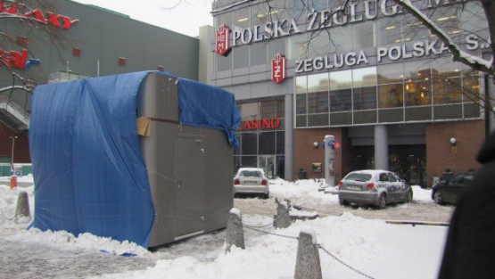 Szczecin to nie salony Wersalu - przekonuje stowarzyszenie KoLiber. Takie budki jak ta na pl. Rodła świadczy o uzdrowieniu rynku....