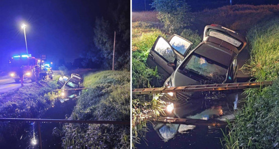 Mercedes na niemieckich rejestracjach w rowie melioracyjnym na Wyspie Puckiej