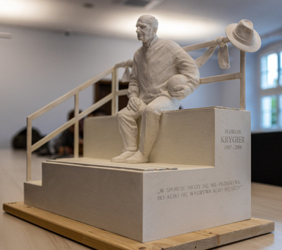 Pomnik Floriana Krygiera – najbardziej zasłużonej postaci dla Pogoni Szczecin – stanie przed stadionem, od strony wejścia od ul. T...