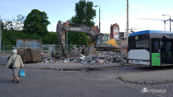 Wyburzono niszczejący od lat budynek na pętli Stocznia Szczecińska