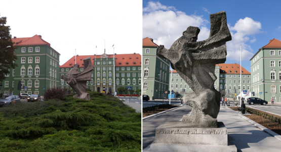 Wcześniej był „ukryty” wśród zieleni, teraz nie sposób go przeoczyć. Nowy sposób wyeksponowania Gryfa Pomorskiego